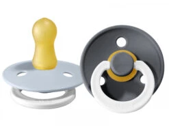 Lot De 2 Tétines Bibs Colour T2 – Gris Fer Phosphorescent & Bleu Layette Phosphorescent