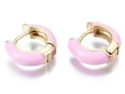 Paire De Boucle D’oreille Huggie – Émaillé Et Doré à L’or Fin – Rose Pâle