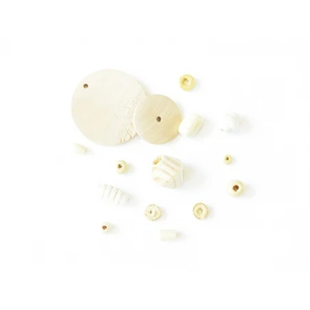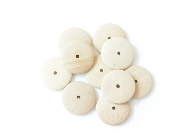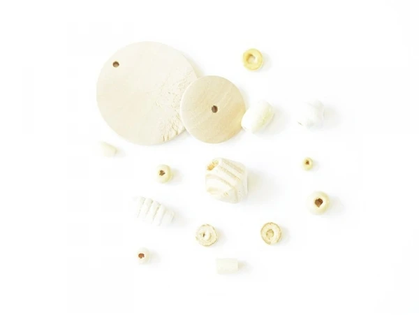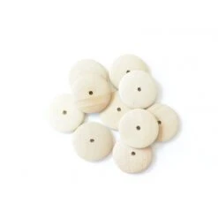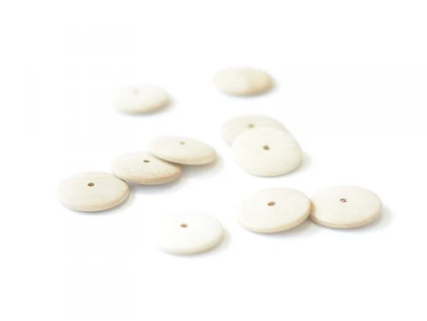 Lot de 10 perles de forme ronde en bois naturel.