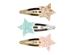 Lot De 3 Barrettes Angelie – Étoiles à Paillettes – Bronze, Rose Et Bleu