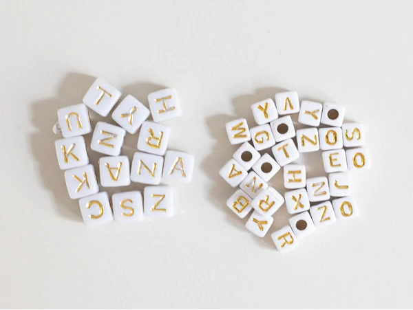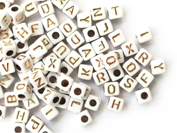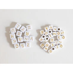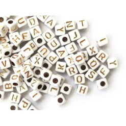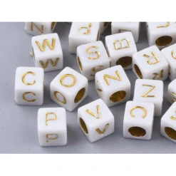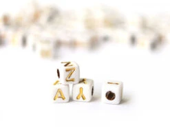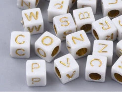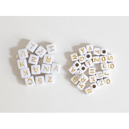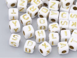 Ces perles seront idéales pour former un collier ou un bracelet avec un message, une phrase ou encore le prénom de votre choix, ainsi vous pourrez créer un cadeau personnalisé et unique. Avec leur forme cubique et leur couleur blanche ornée de lettres en majuscule dorées, ces mini perles s’accommoderont à divers types de création et s’adapteront facilement à des fils ou des liens ne dépassant pas 3mm. De plus, leur revêtement en acrylique vous permettront de les coller sur des objets tel qu’un cadre pour un aspect original et DIY.