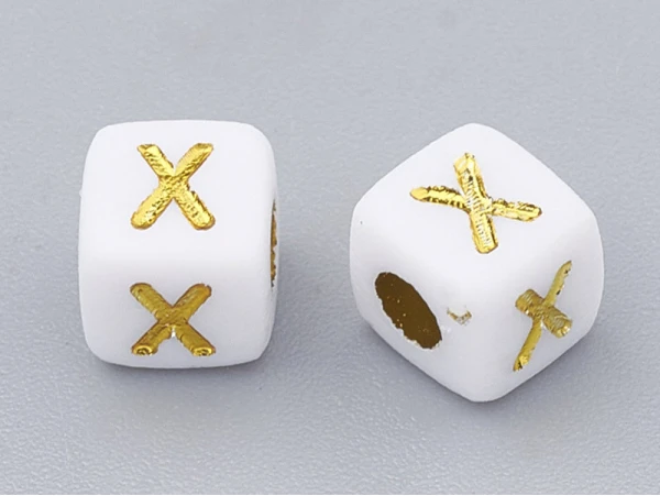Ces perles décorées de lettres alphabet en forme de cube d’une taille de 4.5×4.5×4.5mm vous permettront de réaliser des créations de bijoux ou de customiser des objets de façon originale. Grâce à leur revêtement en acrylique, ces mini perles carrées garderont leur couleur blanche et leur effet or au fil du temps.