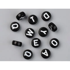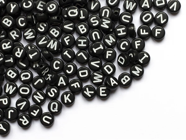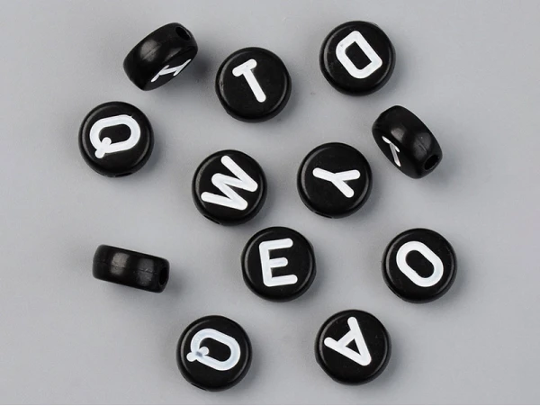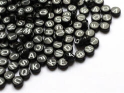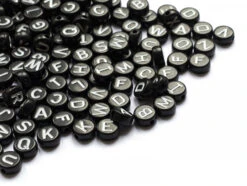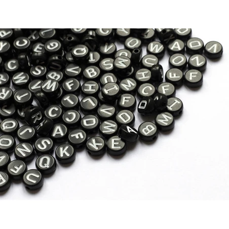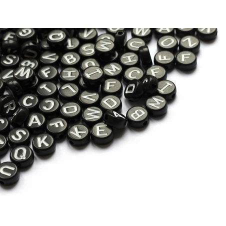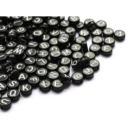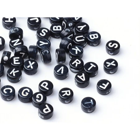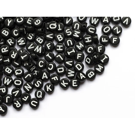 200 Perles Rondes En Plastique – Lettres Alphabet – Noir Et Blanc – 7 Mm