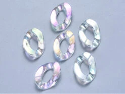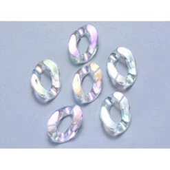 50 Grands Maillons En Plastique 30 X 21 Mm – à Connecter Pour Création De Chaîne – Blanc Nacré Et Irisé
