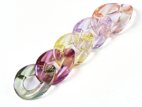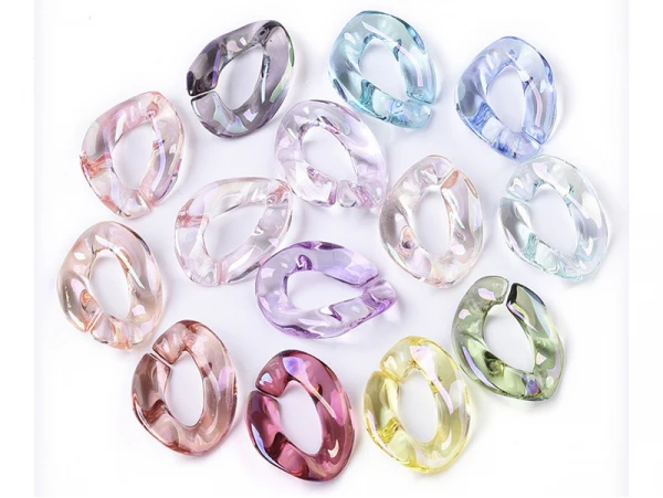 Anneaux de liaison en acrylique transparent, couleur AB plaquée, connecteurs de lien rapide, pour la fabrication de chaînes de gourmette de bijoux, torsion, couleur mixte, 22,5×16,5×5 mm, diamètre intérieur: 6×12 mm