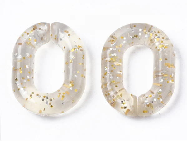 Anneaux de liaison en acrylique transparent, avec poudre de paillettes, connecteurs de lien rapide, pour la fabrication de chaînes de câbles de bijoux, ovale, beige, 19,5×14,5×4,5 mm, diamètre intérieur: 5,5×10,5 mm