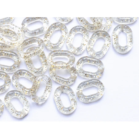 50 Maillons Ovales En Plastique 19 X 14 Mm – à Connecter Pour Création De Chaîne – Transparent à Paillettes