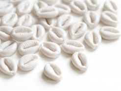 Munissez-vous de ce lot 50 perles coquillages cauri en plastique blanc