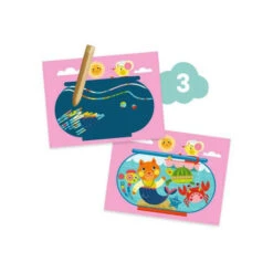 Le chat et ses amis accompagnent les enfants tout au long de ces activités. Les personnages mignons et colorés captent l’attention des petits, les encourageant à explorer leur créativité et à développer leur motricité fine. Qu’il s’agisse de gratter des surfaces pour révéler des couleurs ou de coller des formes en feutrine, chaque étape est une véritable aventure visuelle et sensorielle.