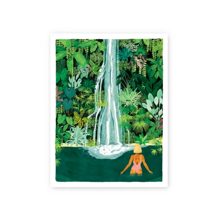 Si vous vous demandez comment dĂ©corer vos murs blancs de votre appartement ou de votre maison, cette affiche de la marque All the ways to say est faite pour vous ! Sa taille moyenne vous permettra de l’accrocher mĂŞme sur des murs peu larges et apportera de la couleur dans la pièce oĂą vous l’afficherez. Son illustration reprĂ©sente une jeune femme se baignant dans une Ă©tendue d’eau avec une magnifique cascade entourĂ©e d’une jungle luxuriante. Nul doute que cette affiche accrochĂ©e Ă un mur ou posĂ©e sur un meuble vous fera voyager et vous donnera envie de dĂ©couvrir un lieu similaire. Les couleurs vives conviendront parfaitement avec un intĂ©rieur aux couleurs neutres pour le rĂ©chauffer ou au contraire un intĂ©rieur très colorĂ© pour apporter une touche de vert Ă la pièce !