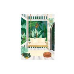Cette affiche est nĂ©e dans l’esprit de Claire Leina, illustratrice et fondatrice de la marque All the ways to say aux cĂ´tĂ©s de son mari, Jean-Charles Da Rocha. BasĂ©e en France, sa fondatrice dĂ©cline l’ensemble de ses idĂ©es sur des cartes, carnets, calendriers ou encore porte-clĂ©s. Elle dĂ©veloppe ses collections Ă partir d’aquarelle uniquement et s’inspire de son amour pour la nature, de ses voyages au BrĂ©sil et au Maroc, en passant par le Cameroun et la GuinĂ©e. La jungle sauvage et luxuriante cĂ´toie des intĂ©rieurs design et Ă©purĂ©s. Les couleurs sont Ă la fois vives, intenses et douces. Plongez-vous dans le dĂ©cor de ces illustrations qui permettent de s’Ă©vader en un regard.