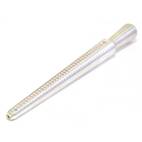Vous souhaitez crĂ©er une bague sur-mesure, pour vous ou un proche ? Le mandrin sera le premier outil Ă acheter. Il vous permet de mesurer la taille que devra faire votre bague en fonction de la circonfĂ©rence de votre doigt. Mesurez votre tour de doigt Ă l’aide d’une de vos bagues, puis former votre crĂ©ation directement autour du mandrin. Pas d’erreur possible, fini les bagues ovales !