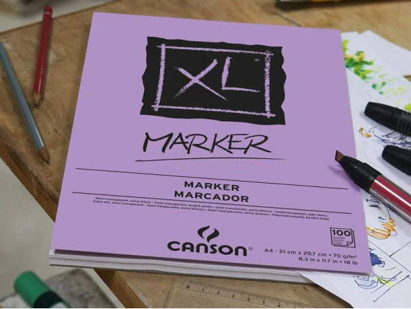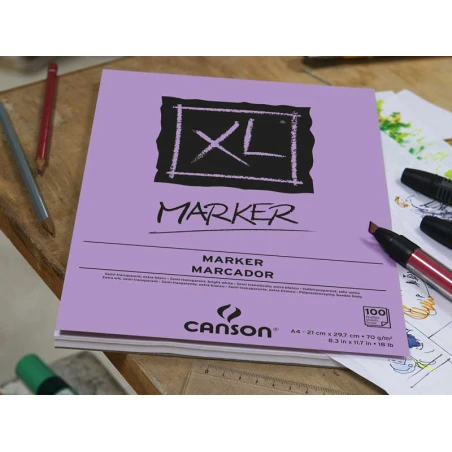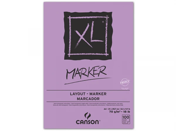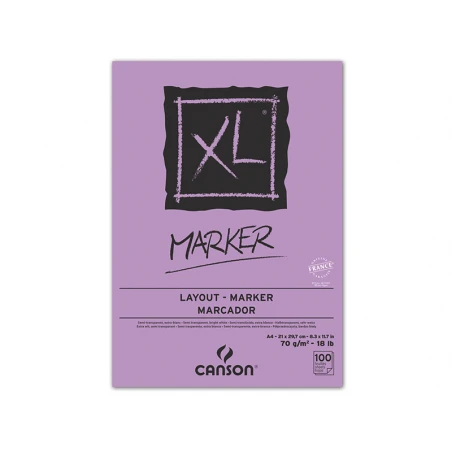 Ce bloc de papier XL Marker de la célèbre marque Canson possède 100 feuilles au format A4 (21 x 29,7 cm) pour un grammage de 70g/m2.