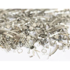 Cette boite contient un assortiment aléatoire d’apprêts : anneaux, fermoirs, attaches de boucles d’oreilles, chaines, barrettes… Le mélange est varié mais il n’est jamais le même d’une boite à l’autre.