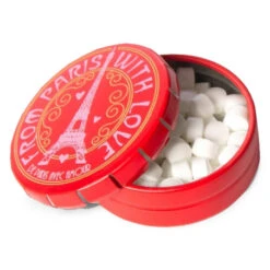 La Petite Épicerie vous propose de merveilleux bonbons à la menthe contenus dans une jolie boîte rouge Tour Eiffel ! Ces petits bonbons à la menthe forte sont idéals si vous avez envie de manger quelque chose durant la journée. vous pouvez les emporter avec vous dans votre sac ou même les laisser dans la voiture. Grâce à sa boîte refermable très facilement, aucun risque que vos bonbons s’éparpillent partout !