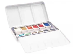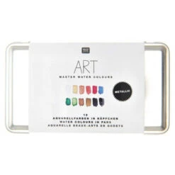 Cette jolie boîte en métal est un cadeau idéal pour les amoureux de peinture aquarelle. Format mini, elle peut se glisser dans un sac pour peindre n’importe où. Elle comporte 12 couleurs chatoyantes et métallisées pour donner vie à vos oeuvres.