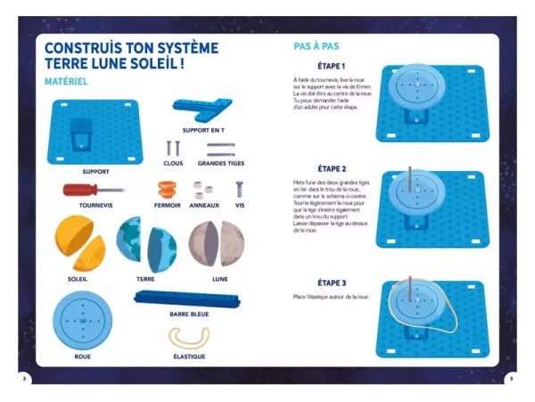 Avec la notice d’assemblage, votre bambin pourra construire tout seul ce super mécanisme où la terre, la lune et le soleil vont pouvoir se dévoiler sous les yeux de votre bambin. Votre enfant pourra découvrir également un grand décor immersif.