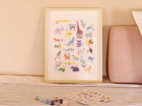 La peinture au numéro est une activité que les enfants adorent et qui suscite de plus en plus l’intérêt des adultes et pour cause : la peinture au numéro a de multiples bienfaits. La Petite Épicerie vous propose ce coffret de peinture au numéro Petit Pinceau, qui ravira les fans de peinture au numéro ! Avec cette illustration au design tendance imaginée par l’illustratrice Maja Tomljanovic, nul doute que vous allez adorer peindre cette affiche Animal Gang. Vous pourrez ensuite l’encadrer et la disposer sur un mur ou sur un meuble chez vous pour égayer la décoration et ajouter une touche de couleur à votre intérieur. Créez une superbe affiche abécédaire pour votre enfant ou peignez-la avec lui !