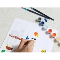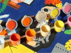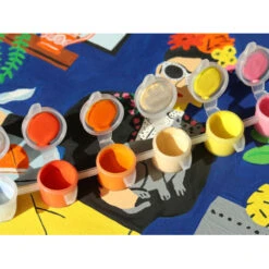Vous disposerez d’une affiche divisée en différentes parties comportant chacune un numéro bien précis. Ce numéro correspond à la peinture à utiliser pour remplir cette parcelle blanche. Vous n’avez plus qu’à utiliser un des deux pinceaux fournis dans le coffret et peindre l’espace correspondant à la couleur. A vous de compléter toutes les parties afin de découvrir la jolie illustration colorée. Pour vous aider, une planche de stickers numérotés a été glissée dans ce coffret, vous n’avez plus qu’à les coller sur chaque petit pot de peinture pour ne pas vous mélanger les pinceaux avec les couleurs.