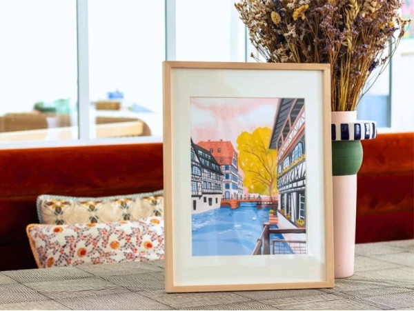 Camille Clerc, artiste passionnée par l’architecture et les paysages urbains, trouve son inspiration dans les villes pittoresques et les quartiers historiques. Sa technique méticuleuse et son souci du détail lui permettent de restituer avec fidélité les nuances et les textures des bâtiments anciens. Les œuvres de Camille, telles que La Petite France, sont imprégnées de son amour pour l’histoire et le patrimoine, invitant les spectateurs à voyager à travers le temps et à s’émerveiller devant la beauté intemporelle des villes européennes.