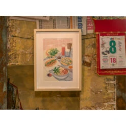 Savourez l’art culinaire du Vietnam avec Vietnamese Food, une illustration pétillante signée Jayne Wong. Ce tableau met à l’honneur les plats emblématiques de ce pays riche en saveurs : le bánh mì, des rouleaux de printemps frais, et une soupe pho délicate, tous disposés sur une table conviviale. Les détails vivants, comme les herbes fraîches, les baguettes en bois et les sauces colorées, transportent vos papilles au cœur de la cuisine vietnamienne.
