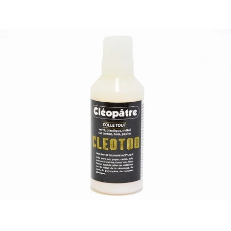 Colle CLEOTOO en flacon de 100g avec bouchon de précision. Colle sur tous les matériaux tels que plastique, papier, verre, métal, carton, bois, feutrine, etc.Cette colle est aussi adaptée pour la technique des serviettes. vous pouvez également l’utiliser pour transformer votre gouache en acrylique : toutes les explications sont au dos du flacon.Caractéristiques du produit :– Contenance : 100 g.Matière : plastique.– Vendu à l’nité.Sans solvant, résistance à l’eau.