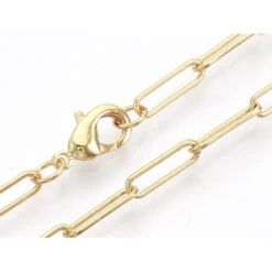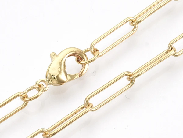 Brass Round Oval Paperclip Chain Necklace Makings, with Lobster Claw Clasps, Real 18K Gold Plated, 18.3″(46.5cm), Link: 12×3.5×0.8mm