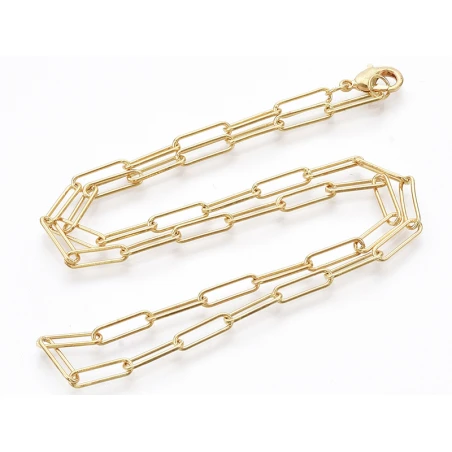 Collier 46 Cm – Chaîne Trombone – Doré à L’or Fin 18K