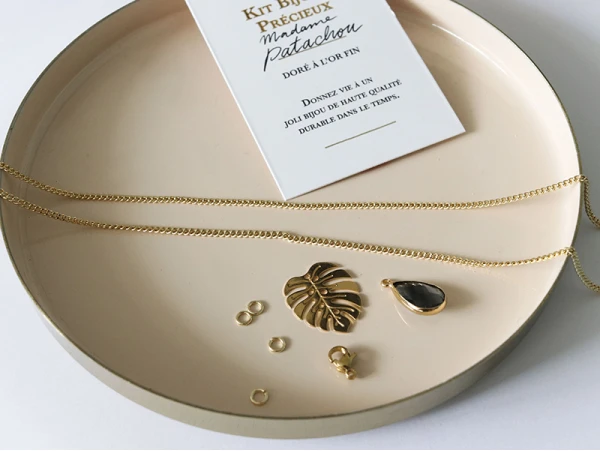 Vous trouverez dans ce joli kit tout le nécessaire pour réaliser ce beau collier doré à l’or fin, imaginé par Madame Patachou.
