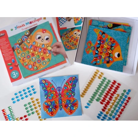 Laissez votre enfant confectionner de beaux tableaux en mosaïques avec des pierres scintillantes !