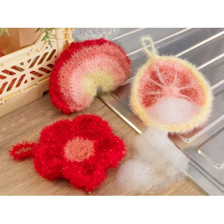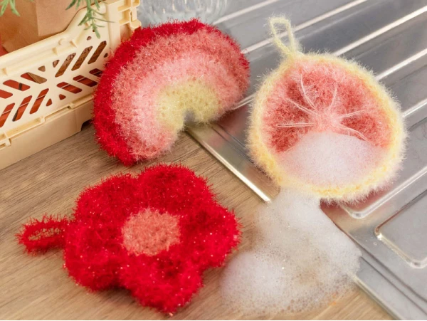 La réalisation de ces éponges à crocheter est accessible pour tous, débutants comme passionnés. En effet, vous réaliserez ces trois éponges étape par étape, à l’aide également d’un tuto vidéo disponible sur notre site, juste ici.