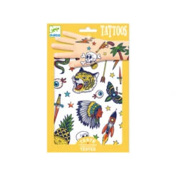 Les tatouages font le bonheur des enfants, filles comme garçons. Ces deux planches de tatouages sur les thèmes favoris des enfants de la marque Djeco vont forcĂ©ment faire le bonheur de votre bambin. Le style colorĂ© accentuĂ© par des dĂ©tails dorĂ©s des tatouages sont parfaits pour les beaux jours et l’Ă©tĂ© qui arrive. Faciles Ă utiliser, tous les tatouages sont dĂ©jĂ prĂ©dĂ©coupĂ©s pour aider votre enfant Ă prendre les tatouages qu’ils prĂ©fèrent. Parmi ces 50 tatouages, votre bambin pourra trouver des dinosaures, des animaux ou encore des tĂŞtes de mort.