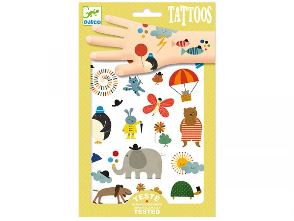 Les tatouages font le bonheur des enfants, filles comme garçons. Ces deux planches de tatouages reprĂ©sentant des animaux trop mignons de la marque Djeco vont forcĂ©ment faire le bonheur de votre bambin. Le style poĂ©tiques accentuĂ© par des dĂ©tails attendrissants des tatouages sont parfaits pour les beaux jours et l’Ă©tĂ© qui arrive. Faciles Ă utiliser, tous les tatouages sont dĂ©jĂ prĂ©dĂ©coupĂ©s pour aider votre enfant Ă prendre les tatouages qu’ils prĂ©fèrent. Parmi ces 50 tatouages, votre bambin pourra trouver un ours, un Ă©lĂ©phant, une tortue ou encore un pingouin !
