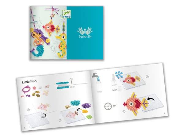 Un kit pour crĂ©er 3 suspensions « marines » avec des billes Ă eau. L’enfant place le modèle sous la plaque alvĂ©olĂ©e transparente. Il positionne ensuite les billes colorĂ©es pour reproduire le dessin proposĂ©, puis vaporise de l’eau sur sa rĂ©alisation. Une fois sèches, les billes restent collĂ©es les unes aux autres comme par magie ! Il assemble ensuite perles, ruban et breloques pour transformer ses crĂ©ations en jolies suspensions. 6-10 ans – years