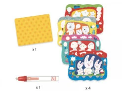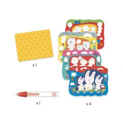 Une pochette de coloriage à l’eau adaptée pour les enfants, dès 18 mois. L’enfant colorie à l’aide du crayon à eau les parties blanches pour découvrir ce qui se cache sur la route. C’est magique : des motifs apparaissent ! Les planches sèchent et l’enfant recommence ! + 18 mois – months
