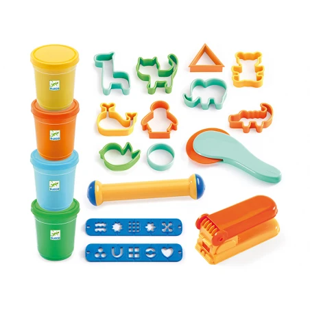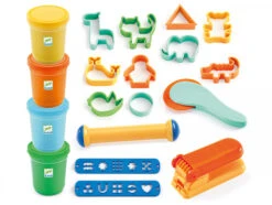 Un premier coffret de pâte à modeler complet pour les enfants, dès 18 mois. 15 accessoires et 4 pots de pâte à modeler ultra souple et parfumée pour patouiller et créer en toute liberté.