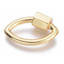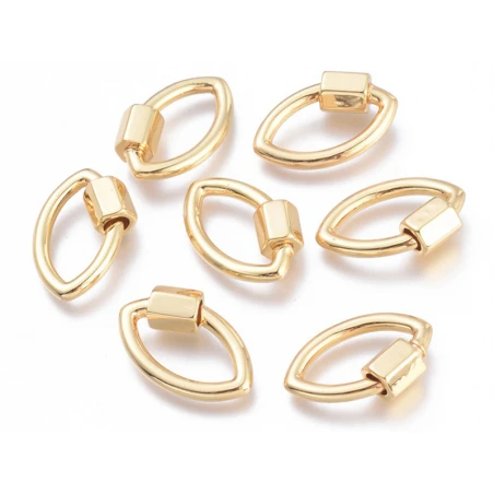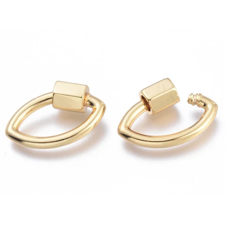 Fermoir mousqueton à visser forme oeil – 19 x 12 mm – doré à l’or fin 18 K – en laiton, pour la fabrication de colliers, plaqué longue durée, sans cadmium et sans plomb et sans nickel.Adapté aux chaines épaisses, comme les chaines trombone.