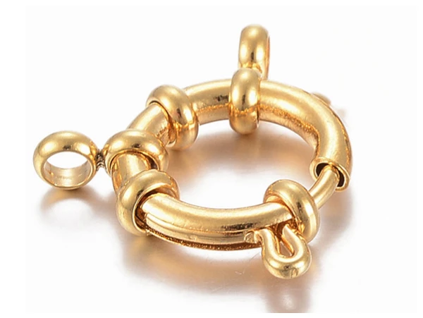 Fermoirs à anneaux à ressort en acier inoxydable 304, or, 23x14x4 mm, trou: 2,5 mm