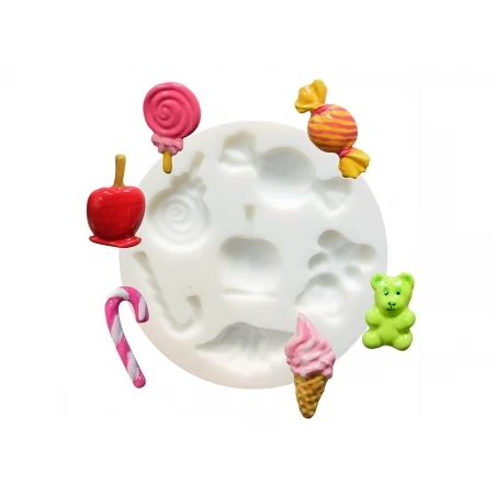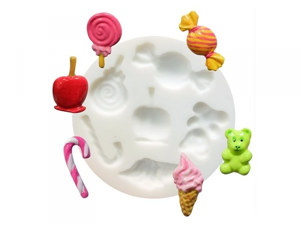 Souple, de grande précision, antiadhésif, ce moule permet également un démoulage facile. Il ne tient plus qu’à vous de réaliser de jolis moulages en pâte polymère, en forme de pomme d’amour, de glace, d’ourson à la guimauve, de sucette ou encore de bonbon !