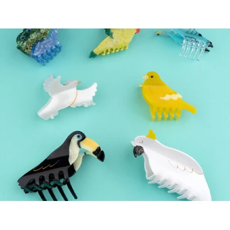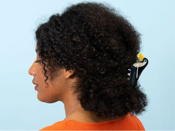 Les accessoires pour cheveux sont le must-have à porter été comme hiver. Bandeaux, barrettes, pinces à cheveux ou encore chouchous sont les accessoires qui apportent le petit plus à une tenue classique et casual. Cette jolie pince à cheveux noir et jaune en forme de toucan est parfaite pour coiffer vos cheveux simplement et en quelques secondes seulement ! La pince à cheveux de la marque Coucou Suzette est assez grande pour vous permettre de structurer vos mèches rebelles ou donner une touche d’originalité à votre coiffure. Les dents de la pince à cheveux sont en plastique ce qui permet un meilleur confort au niveau du cuir chevelu et un maintien tout au long de la journée.