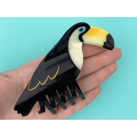 Attachez vos cheveux avec cette pince à cheveux noir en forme de toucan !