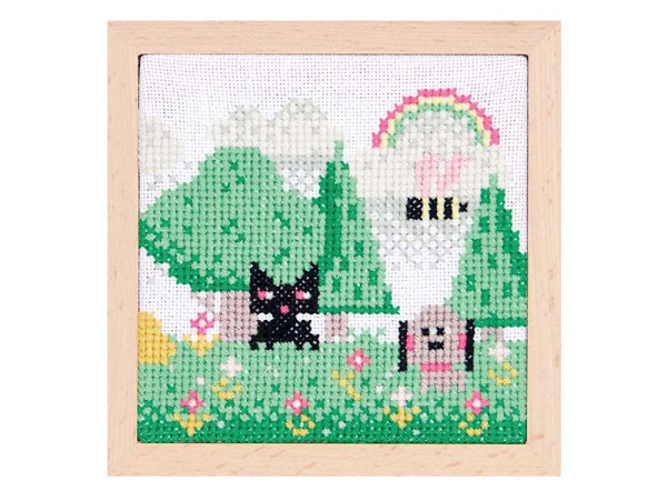 Le kit tout inclus comprend une toile à broder, des fils colorés, une aiguille, un cadre ainsi que des instructions détaillées pour vous guider pas à pas dans la réalisation de cette œuvre. La technique du point de croix est idéale pour les débutants comme pour les brodeurs expérimentés, et vous permettra de créer une pièce unique à exposer fièrement dans votre maison. Ce paysage avec son adorable chat noir constitue également un cadeau original pour les amoureux des loisirs créatifs et des décorations faites main.
