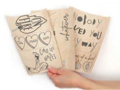 Vous retrouverez dans ce kit huit motifs différents tels que des phrases, des mots ou encore des coeurs joliment ornés. Vous n’avez plus qu’à choisir votre modèle et la couleur avec laquelle vous souhaitez réaliser votre broderie parmi les 12 couleurs d’échevettes de coton fournies.