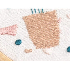 Le kit comprend tout le matériel nécessaire afin de broder votre décoration. Vous y trouverez aussi un tissu en coton uni rose ainsi que le motif de taille originale qui peut être transféré.