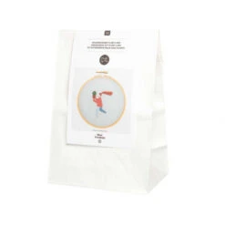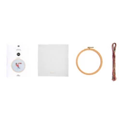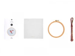 Le kit comprend tout le matériel nécessaire afin de broder votre décoration. Vous y trouverez aussi un tissu en coton bleu clair ainsi que le motif de taille originale qui peut être transféré.