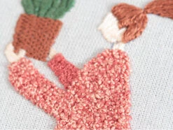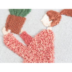 Le kit de broderie traditionnelle – « plant lady » – la jeune fille au cactus par Slow evenings contient :