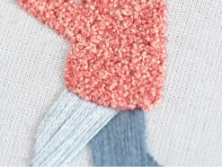 Les motifs de cette broderie ont été crées par Miriam Polak. Pour réaliser l’ouvrage, divers points de broderie sont utilisés : point de tige, point de satin, nœud et optique de point tissé. Il faut donc s’y connaître un peu avant de débuter ce kit.