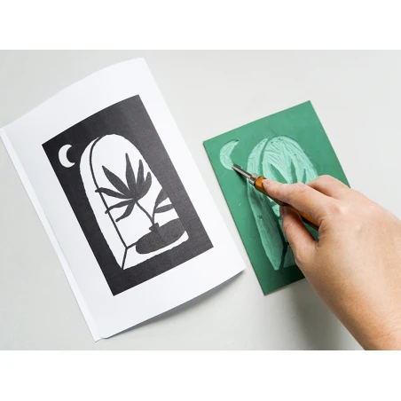 Vous aviez envie de vous lancer dans la linogravure ? Ce kit MKMI: Mes cartes en linogravure de La Petite Epicerie est fait pour vous ! Cette box crĂ©ative contient tout le matĂ©riel dont vous avez besoin pour crĂ©er 4 cartes en linogravure. La technique de la linogravure provient de la technique de l’estampe, un procĂ©dĂ© japonais qui consiste Ă imprimer les estampes faites Ă partir de gravure sur bois. Au lieu de graver une planche de bois de fil, il s’agit de travailler une matière synthĂ©tique, ici une planche de gomme.Â