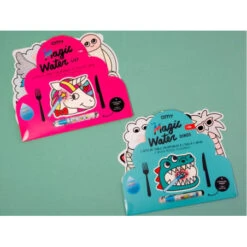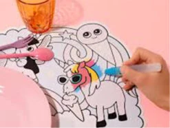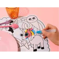 Dans son packaging colorĂ©, dĂ©couvrez deux sets de table plastifiĂ© Ă peindre grâce au magic pen !Â