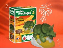 Le kit Le monde des dinosaures : Tricératops de Mako Moulage transporte les enfants au cœur du monde préhistorique. Ce coffret permet de recréer un tricératops, célèbre dinosaure à trois cornes, et de le peindre avec des couleurs vibrantes. Mako Moulage fournit tous les outils nécessaires pour que l’enfant puisse façonner et décorer sa propre figurine, tout en découvrant l’histoire des dinosaures.
